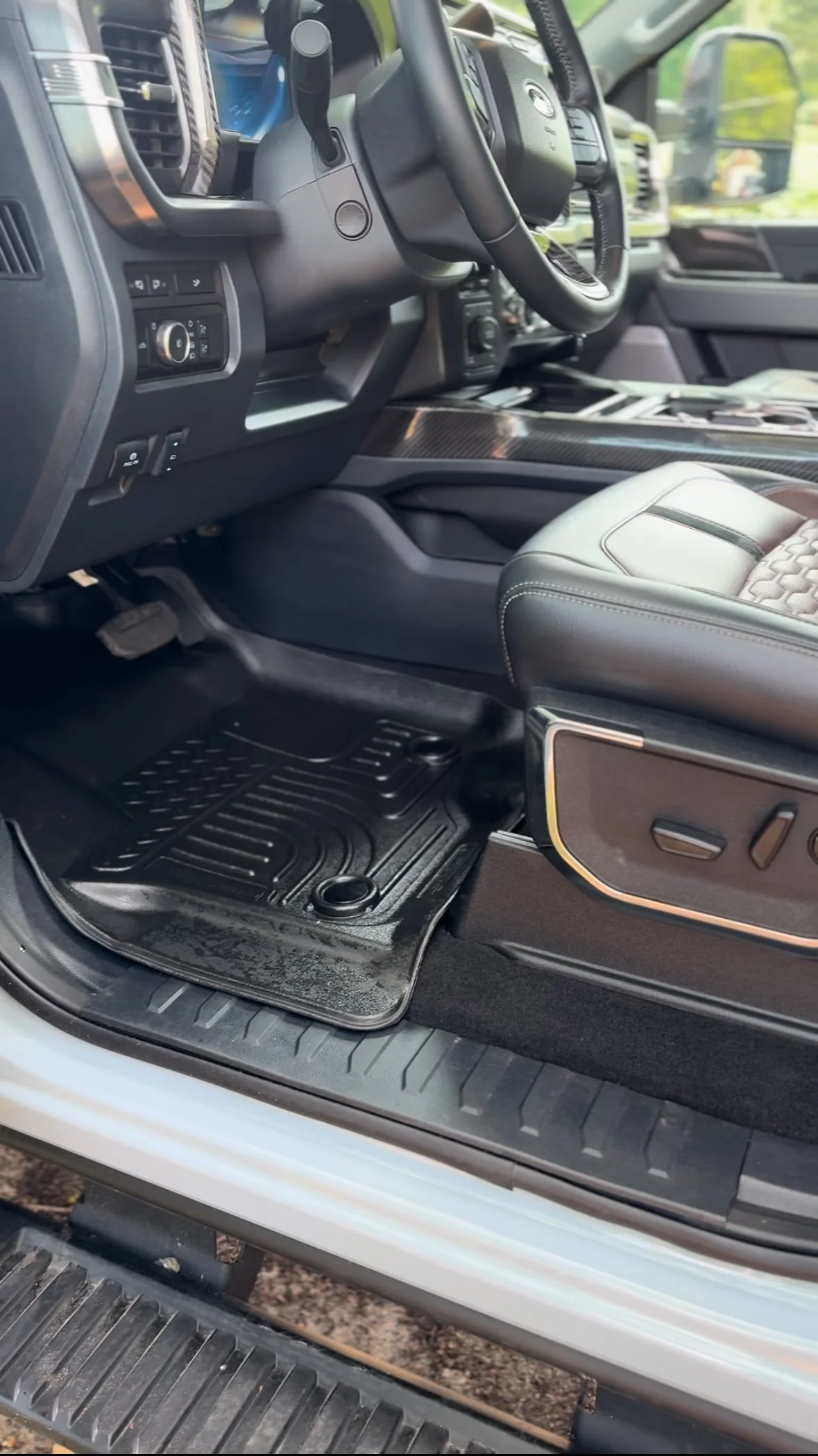 Rubber floor mats coated in rubber protectant.